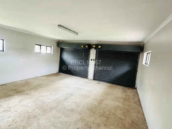 Step inside to a bright living room boasting a spacious layout with tiled flooring and a stylish stone feature wall. Natural light pours in through large windows, creating an airy ambiance. Transitioning through a neutral-toned hallway, youll find functionality in the sizeable garage, equipped with dual roll-up doors and natural lightinga perfect space for storage or a mini workshop.