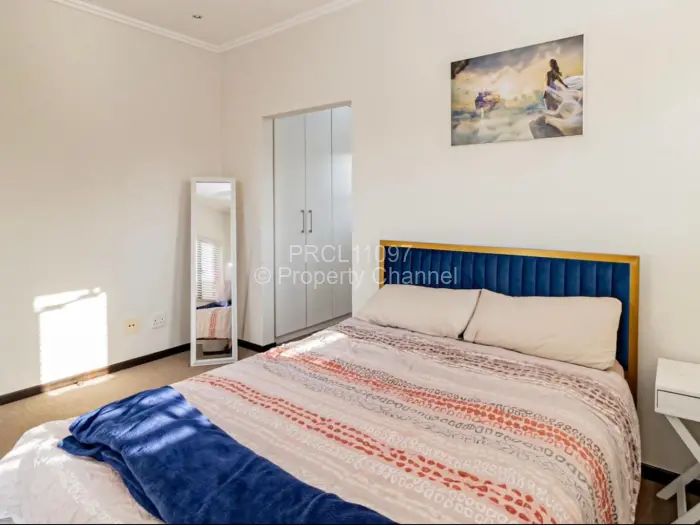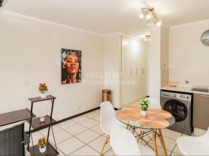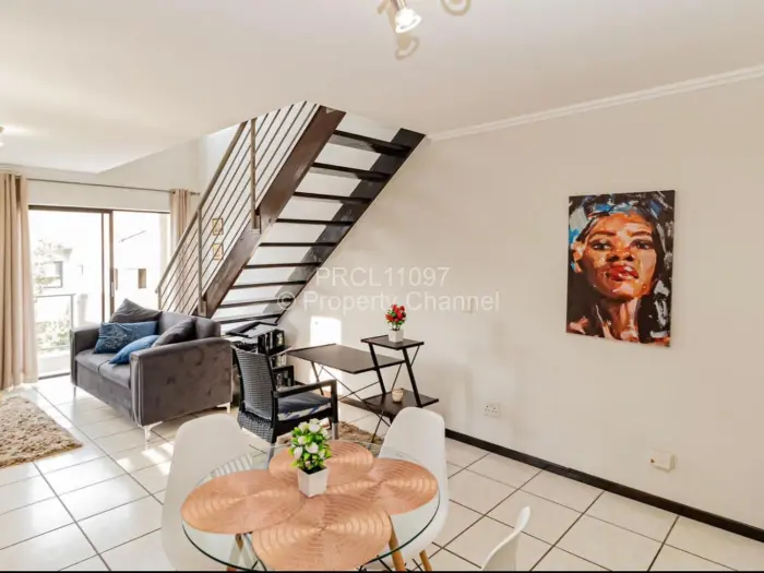 This charming 1-bedroom loft in Paulshof, Sandton, presents an inviting blend of style and comfort. As you enter the complex, a well-paved driveway welcomes you with lush greenery and a secure manned gate.